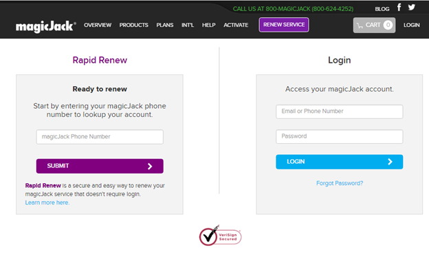 - Go to www.magicJack.com, select Login. On this page you will see an option to start Rapid Renew